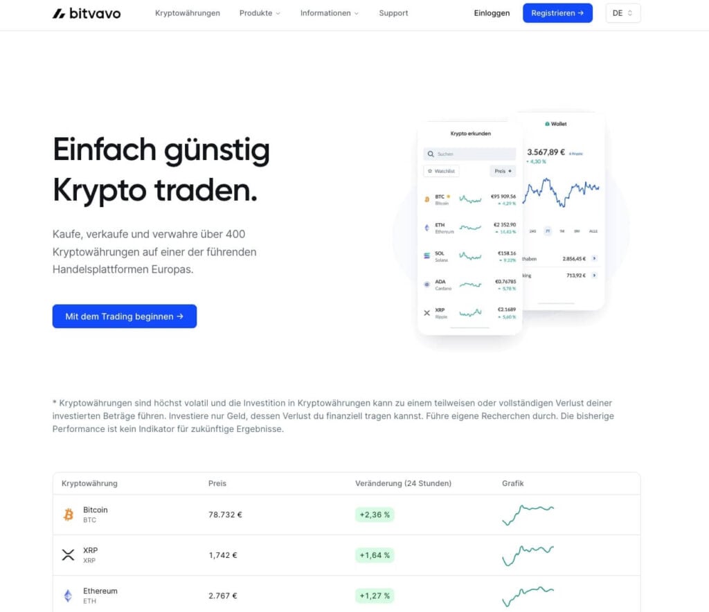 Die Plattform richtet sich sowohl an Einsteiger als auch an fortgeschrittene Nutzer und bietet sowohl eine einfache als auch eine fortgeschrittene Handelsansicht für Trading. Bitvavo ermöglicht den Kauf von Bitcoin und vielen weiteren Kryptowährungen zu transparenten Konditionen und niedrigen Gebühren. Ein besonderes Feature ist die Integration mit SEPA-Sofortüberweisungen, wodurch Einzahlungen innerhalb weniger Minuten verfügbar sind. Die Plattform bietet auch Staking für ausgewählte Coins und einen automatisierten Sparplan für regelmäßige Bitcoin-Investitionen.