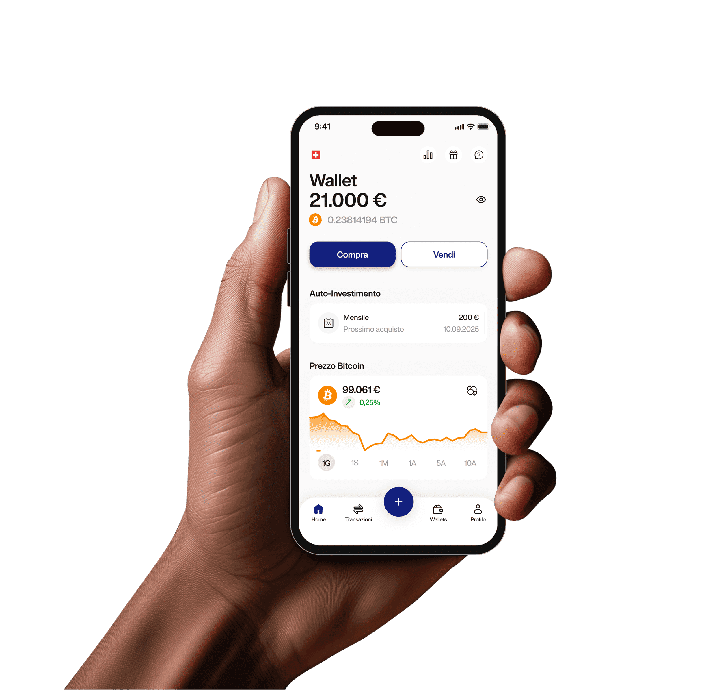 Scarica l’app, completa una rapida verifica ed effettua il tuo primo acquisto di Bitcoin. Nessuna configurazione complicata, nessuna distrazione: bastano pochi minuti.